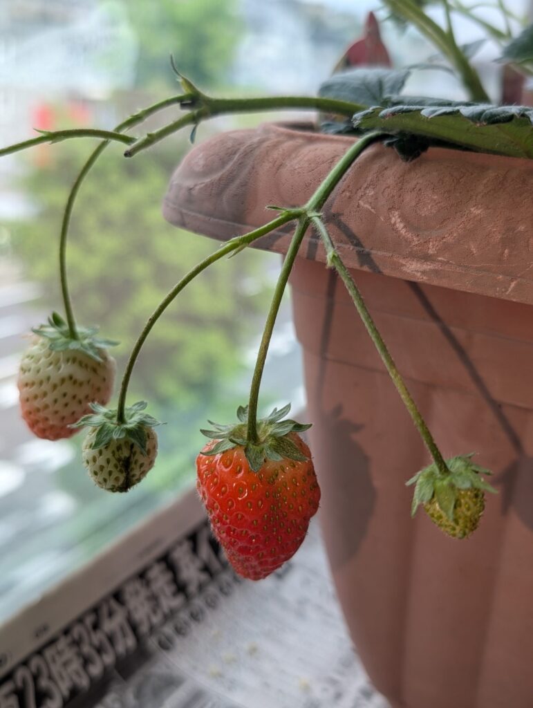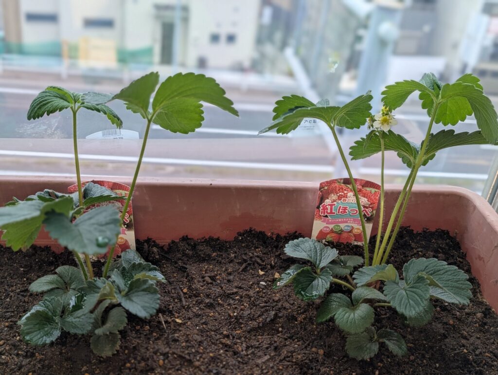 社内では、4月の始めに植えたイチゴが実をつけ出しました🍓